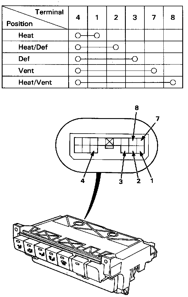 Check for continuity between the terminals according to the table.