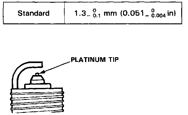 2. Do not adjust the gap of a platinum tip plug; replace the spark plug if the center electrode is rounded or if the gap is not within the specifications.