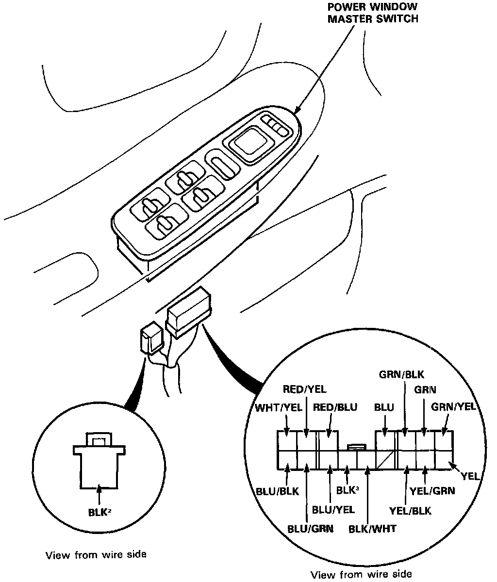 NOTE: The control unit is built into the power window master switch, and only controls driver's door window operations.