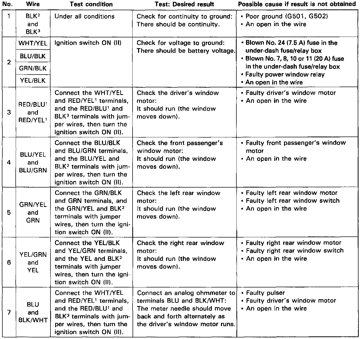 - If all the input tests prove OK, the power window master switch must be faulty; replace it.