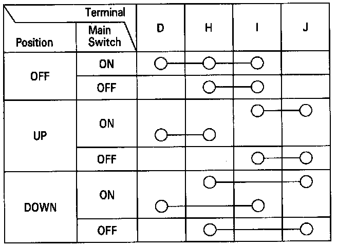 3. Check for continuity between the terminals in each switch position according to the table.