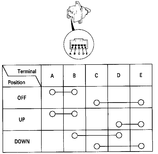 3. Check for continuity between the terminals in each switch position according to the table.