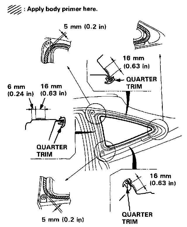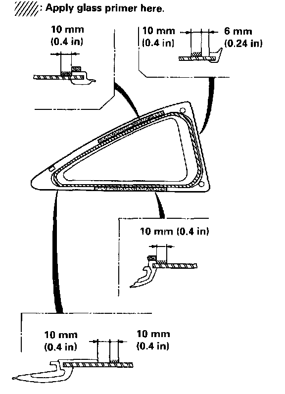 - Never touch the primed surfaces with your hands. If you do, the adhesive may not bond to the quarter glass properly, causing a leak after the quarter glass is installed.