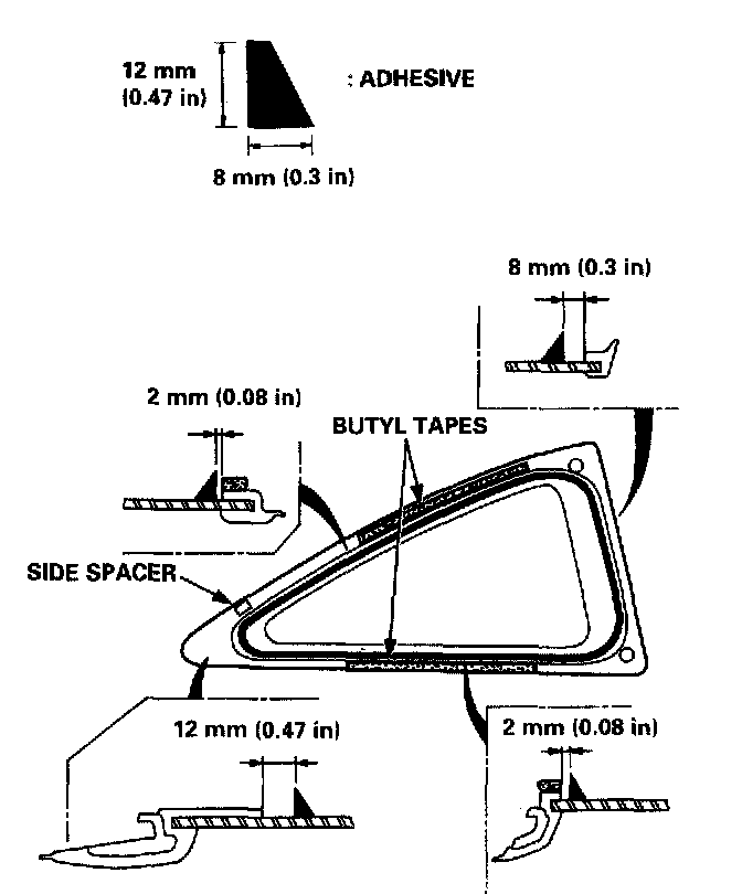 - If any of the clips are broken, the quarter glass can be reinstalled using butyl tape.