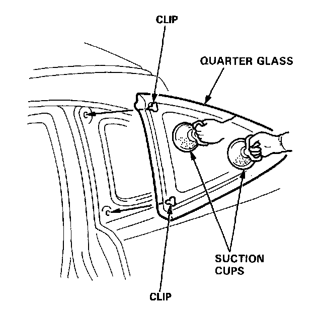 NOTE: Let the car stand for at least four hours after quarter glass installation. If the car has to be used within the first four hours, it must be driven slowly.