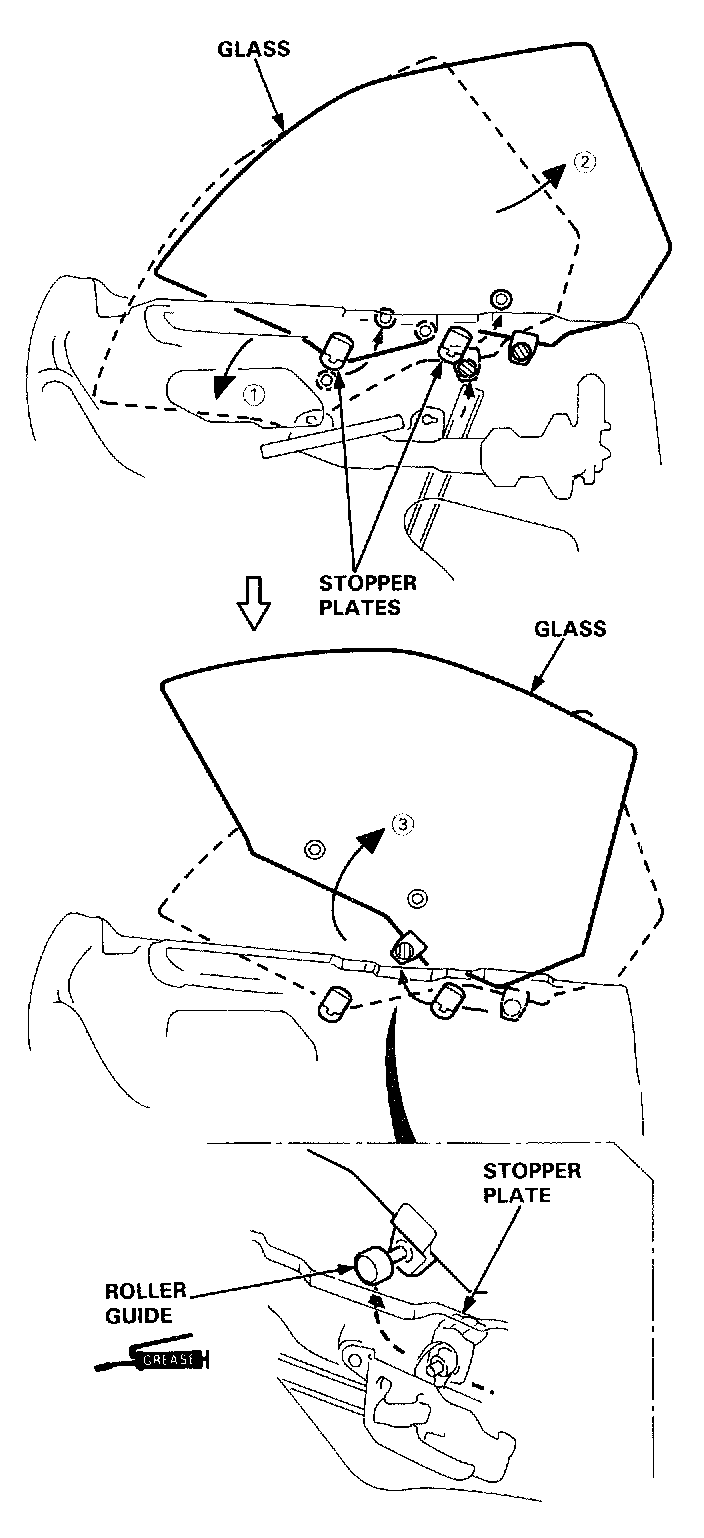 12. Roll the glass up and down to see if it moves freely without binding. Also make sure that there is no clearance between the glass and weatherstrip when the glass is closed. Adjust the position of the glass as necessary.