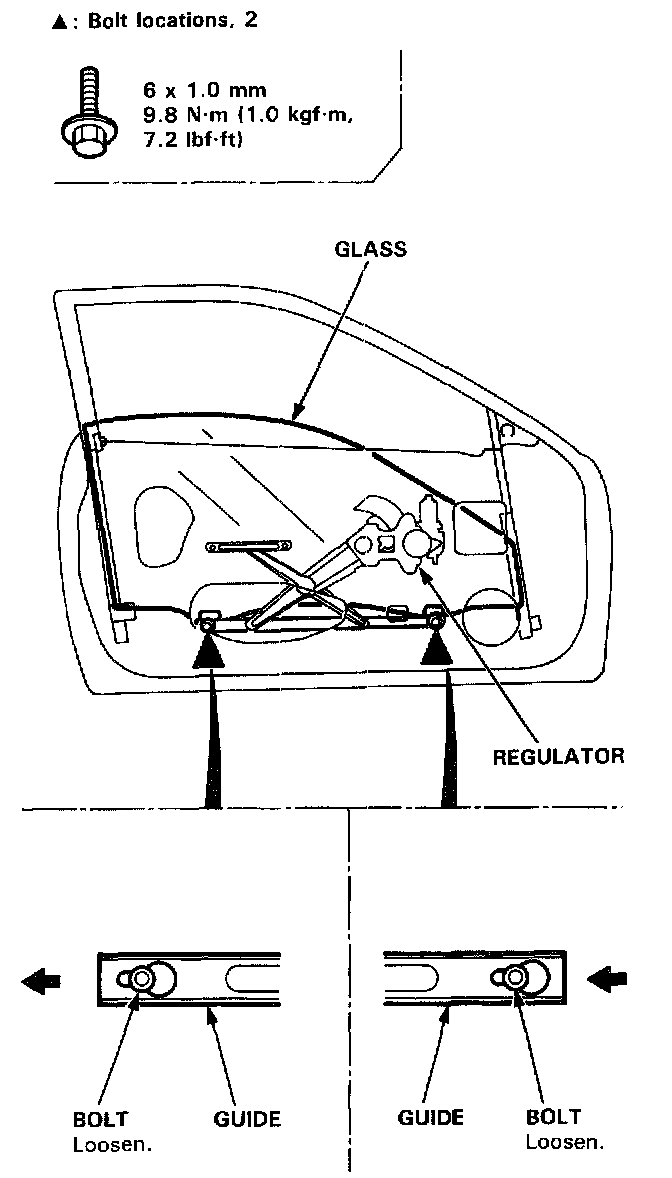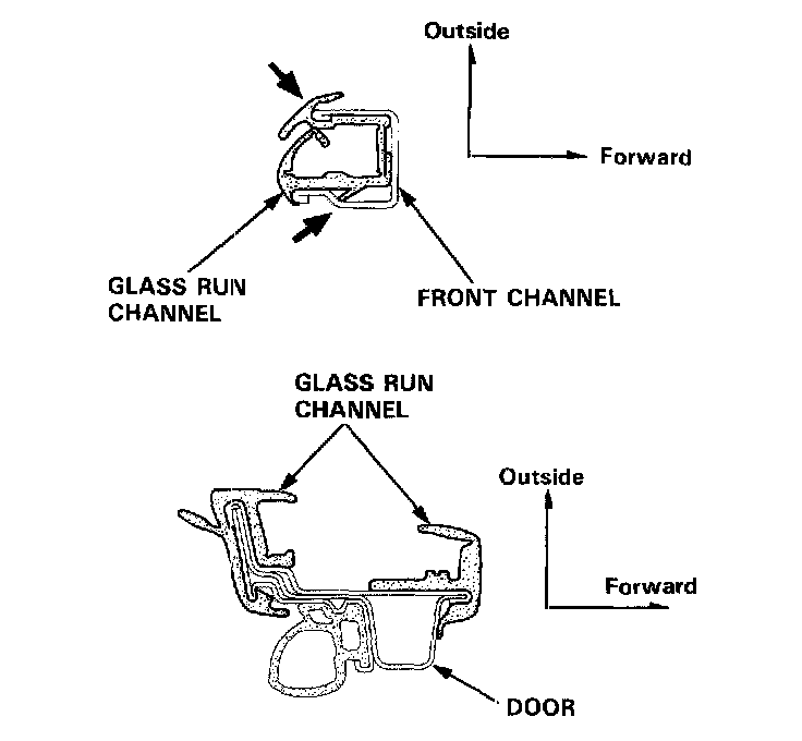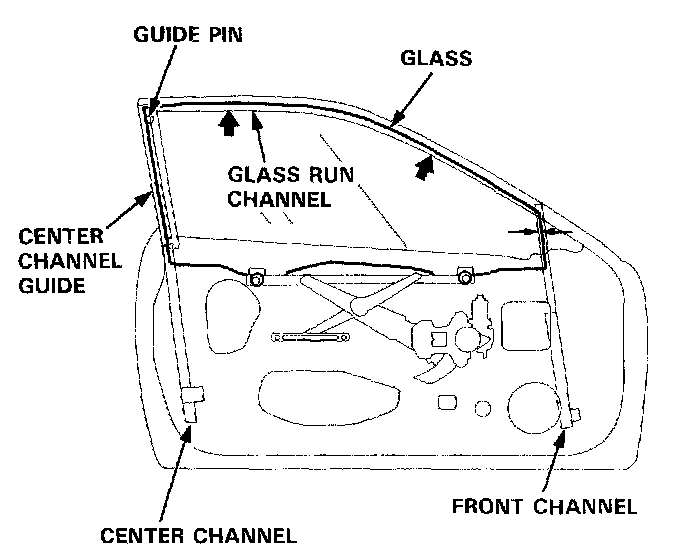 16. Roll the glass up and down to see if it moves freely without binding. Also make sure that there is no clearance between the glass and glass run channel when the glass is closed. Adjust the position of the glass as necessary.