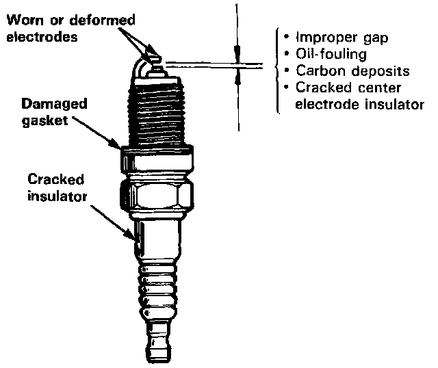 SPARK PLUG / INSPECTION1. Inspect the electrodes and ceramic insulator for: