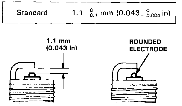 2. Adjust the gap with a suitable gapping tool, and replace the plug if the center electrode is rounded as shown below.