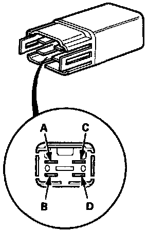 There should be continuity between the C and D terminals.There should be continuity between the A and B terminals when power and ground are connected to the C and D terminals.