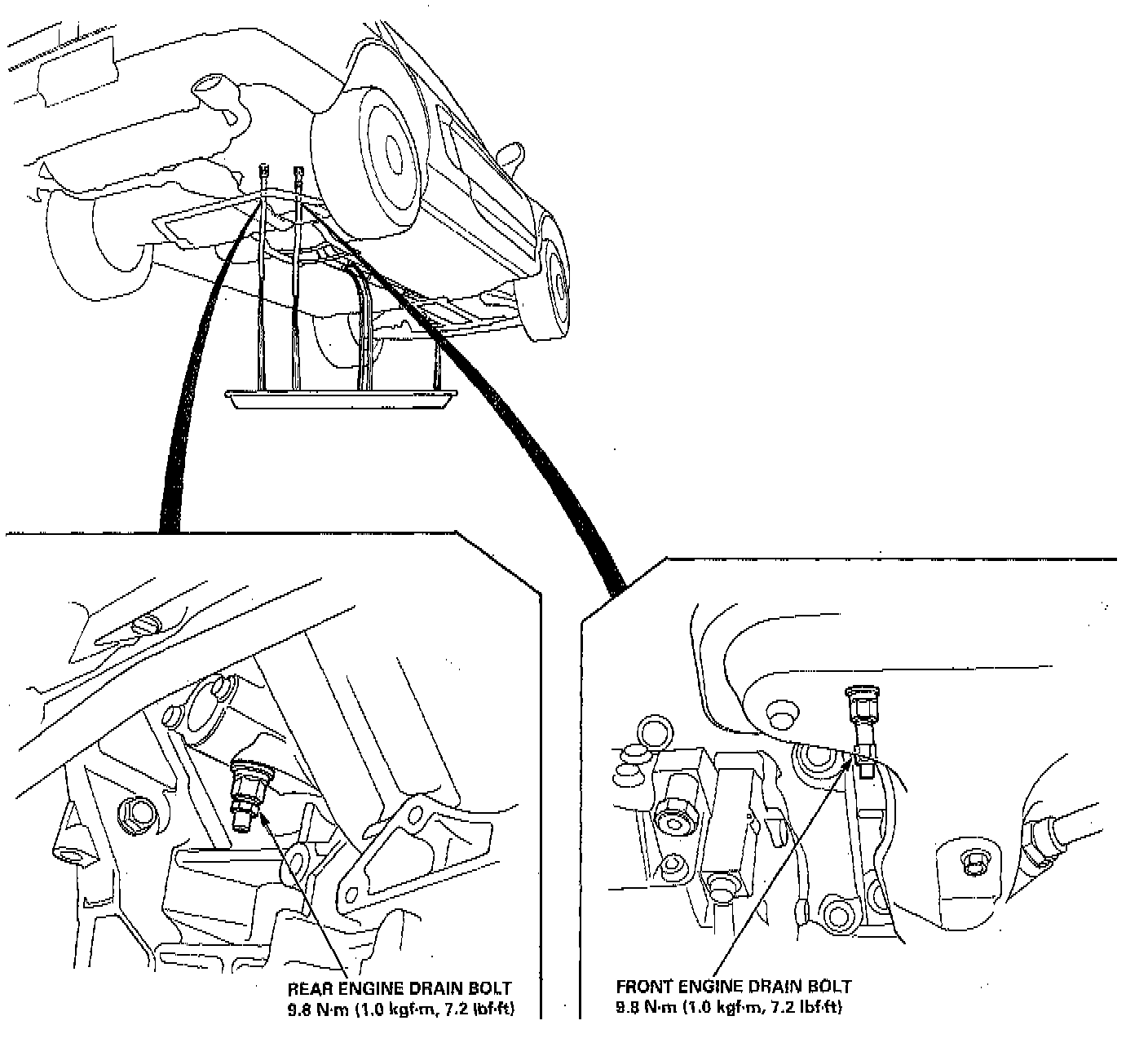 - Draining can be done more quickly if all the bleed bolts and plug are also opened. Before opening them, make sure the coolant level in the expansion tank has come down completely so that the coolant will not pour out of the bleed bolts and plug.