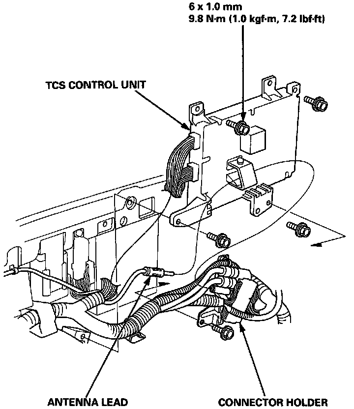 2. Remove the connector holder from the TCS control unit, and disconnect the antenna lead.