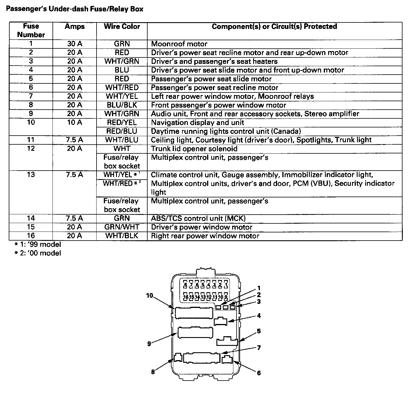 Passenger's Under-dash Fuse/Relay Box Fuse to Components Index: