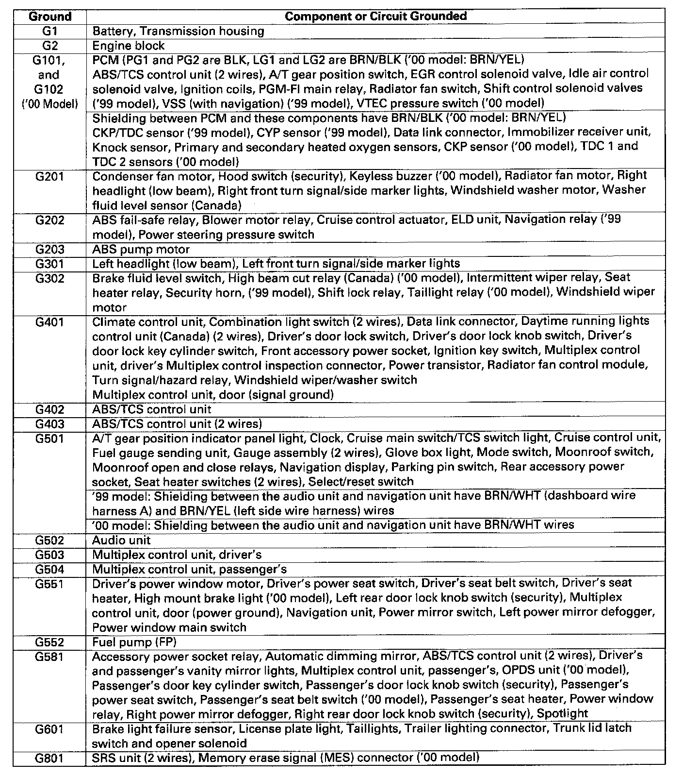 Under-hood Fuse/Relay Box Fuse to Components Index: