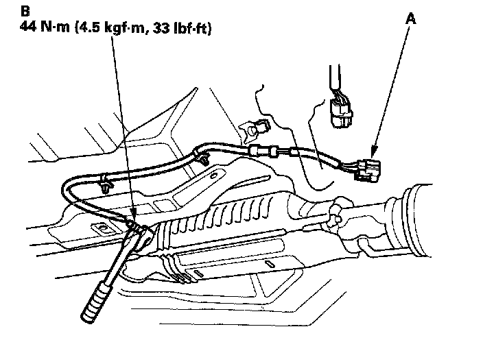 1. Disconnect the secondary HO2S 4P connector (A), then remove the secondary HO2S (B).