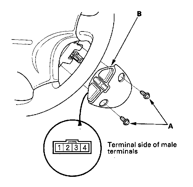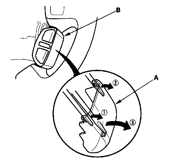 1. Carefully remove the set/resume/cancel switch cover (A) by prying between the cover and the switch (B) in the sequence shown.