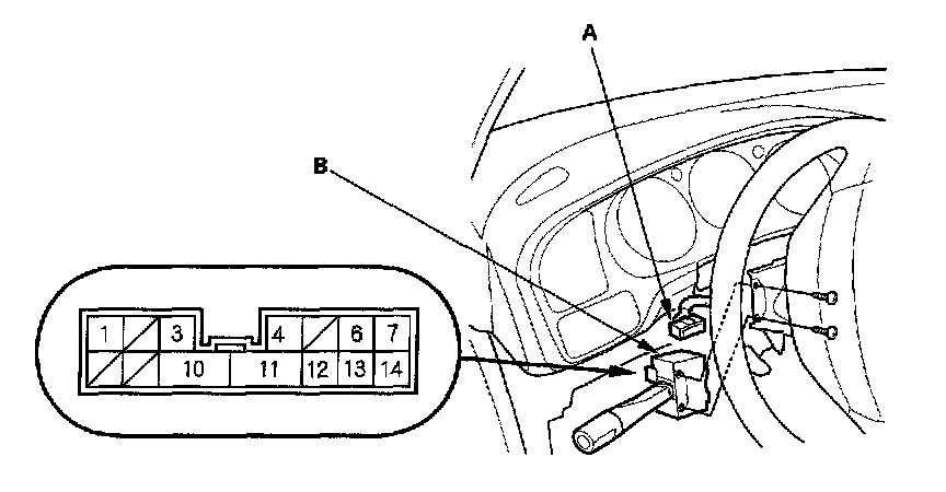 3. Disconnect the 14P connector (A) from the combination light switch (B).