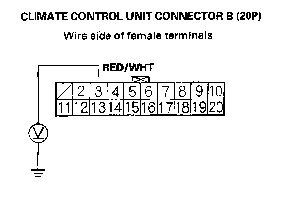 6. Measure the voltage between the No.3 terminal of the climate control unit connector B (20P) and body ground.