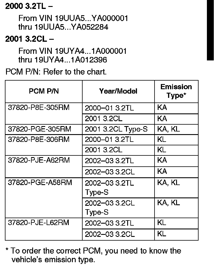 *Some vehicles that received a remanufactured transmission also need a new PCM to improve the performance and durability of the transmission. In addition, to complete the repair on certain 2000 3.2TLs and 2001 3.2CLs, a new fuel pressure regulator is needed.*