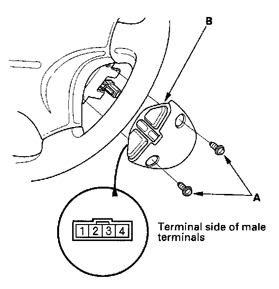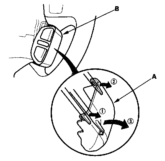 1. Carefully remove the set/resume/cancel switch cover (A) by prying between the cover and the switch (B) in the sequence shown.