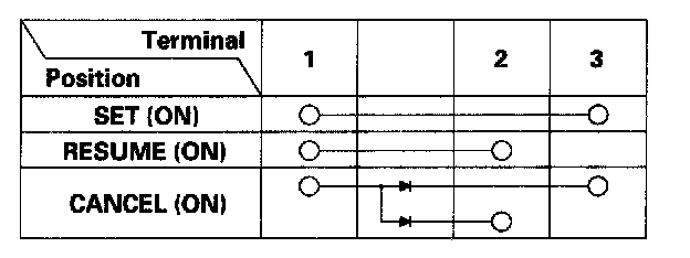 - If there is continuity and it matches the table, but switch failure occurred on the cruise control unit input test, check and repair the wire harness on the switch circuit.