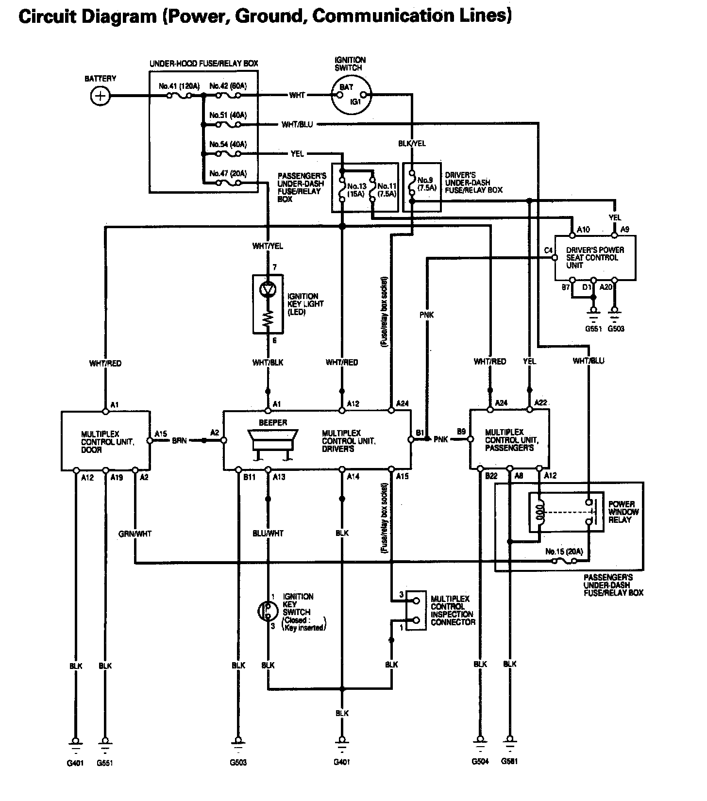 Multiplex Control System - Circuit Diagram (Power, Ground, Communication Lines):