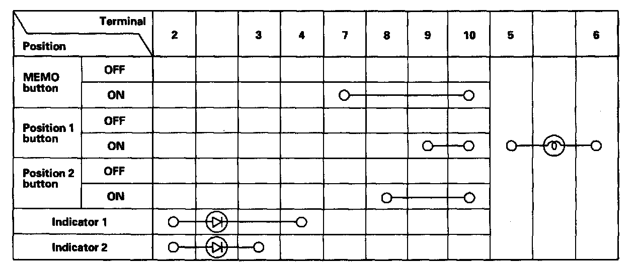 3. Check for continuity between the terminals in each switch position according to the table.