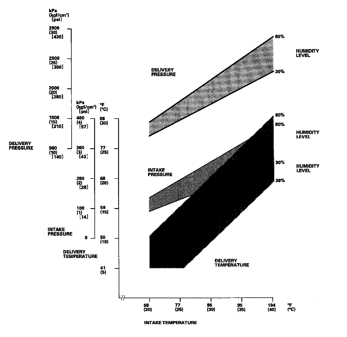 - Mark the intake temperature (ambient air temperature) along the bottom line.