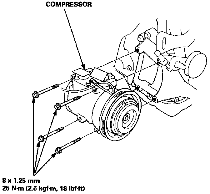 NOTE: Be careful not to damage the radiator fins when removing the compressor.