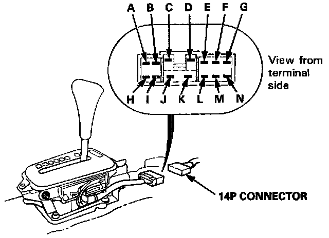 1. Remove the console, then disconnect the 14-P connector from the switch.
