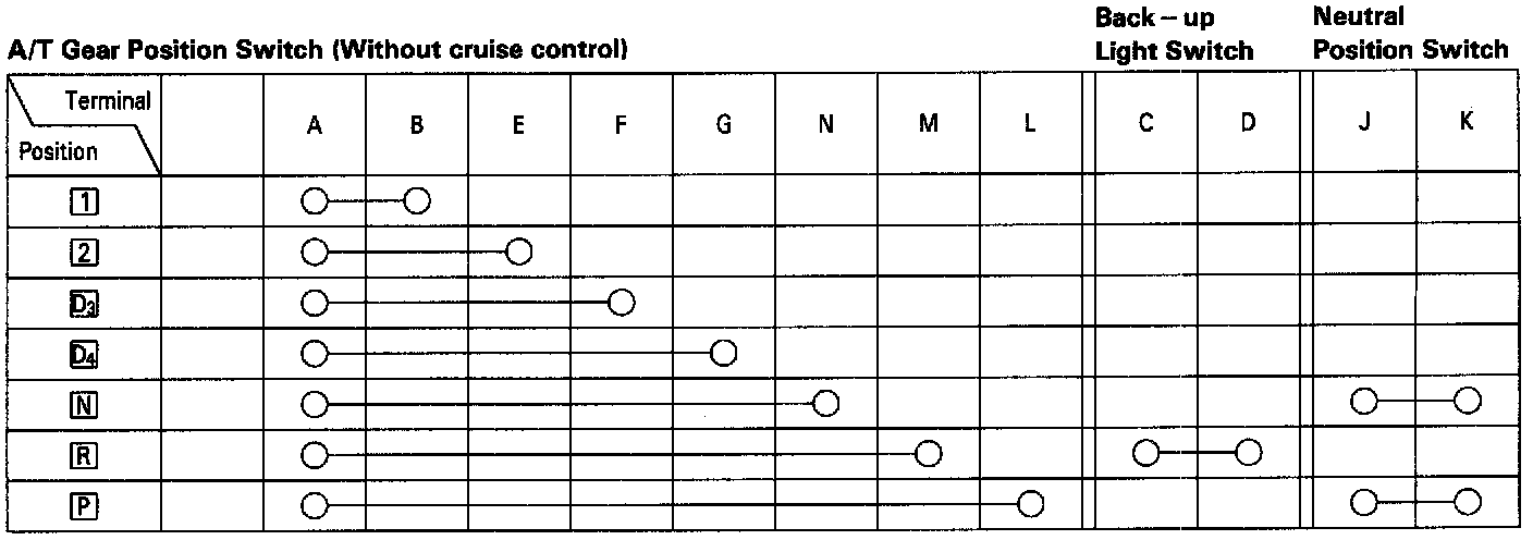 - Move the lever back and forth at each position without touching the push button, and check for continuity within the range of free play.