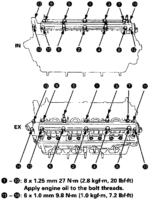 NOTE: Apply clean engine oil to the bolt threads and under the bolt head.