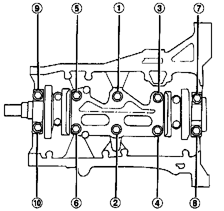 Tighten cylinder head bolts in two steps. In the first step, tighten all bolts in sequence to about 29 Nm (3.0 kgf.m, 22 ft. lbs.). In the final step, tighten in same sequence to 85 Nm (8.7 kgf.m, 63 ft. lbs.).