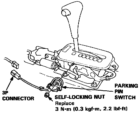 4. If necessary, remove the self-locking nut and the parking pin switch.