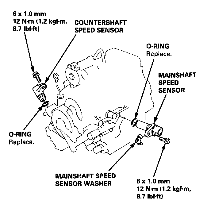 3. Replace the O-ring with a new one before installing the countershaft speed sensor or the mainshaft speed sensor.
