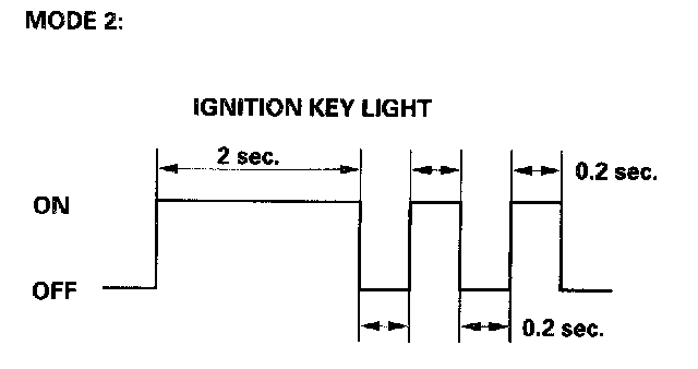 12. From Mode 1, disconnect the special tool from the multiplex control inspection connector for about ten seconds, then reconnect it. The ignition key light should come on and the beeper should beep for 2 seconds, then blink and beep twice more at 0.2 second intervals. This means the system has gone from Mode 1 to Mode 2.