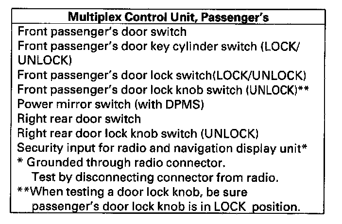 NOTE: To cancel mode 2, disconnect the SCS service connector from the multiplex control inspection connector for more than 10 seconds or turn the ignition switch OFF.