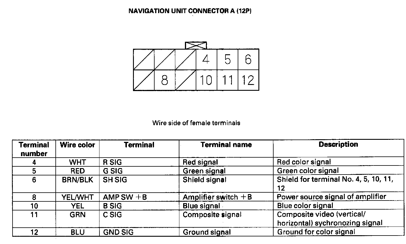 Navigation Unit Inputs And Outputs For Connector A (12P):