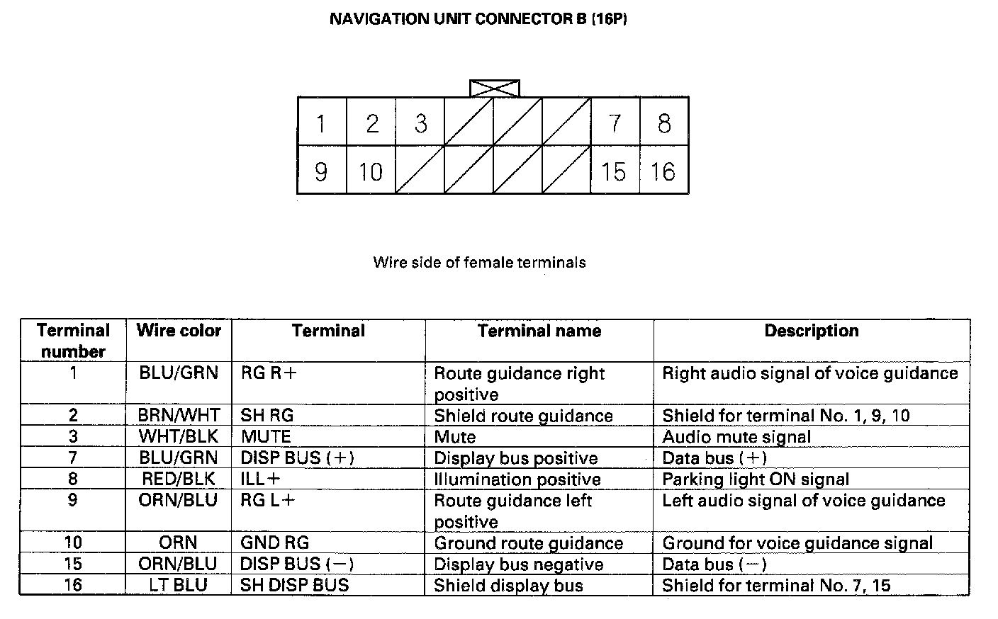Navigation Unit Inputs And Outputs For Connector B (16P):