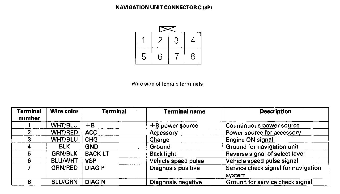 Navigation Unit Inputs And Outputs For Connector C (8P):