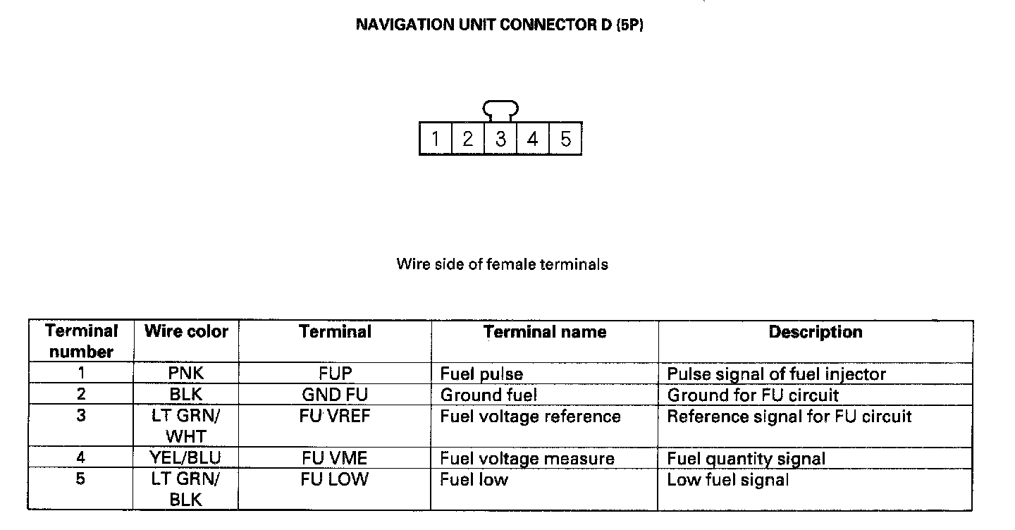 Navigation Unit Inputs And Outputs For Connector D (5P):