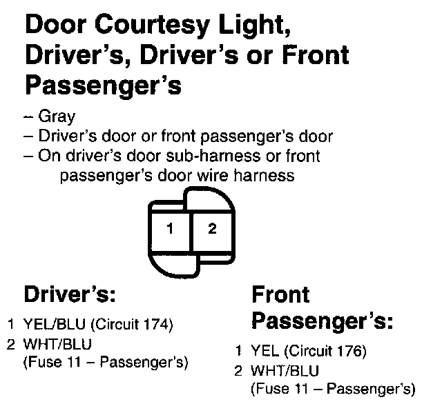Door Courtesy Light, Driver's, Driver's or Front Passenger's: