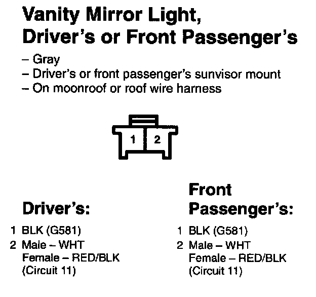 Vanity Mirror Light, Driver's or Front Passenger's:
