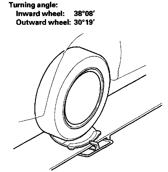 1. Turn the wheel right and left while applying the brake, and measure the turning angle of both wheels.