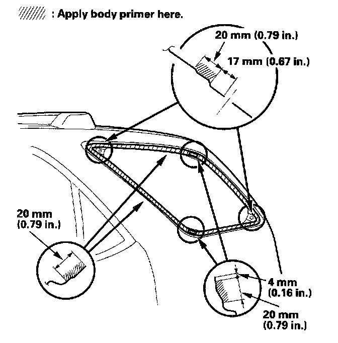 - Never touch the primed surfaces with your hands. If you do, the adhesive may not bond to the quarter glass properly, causing a leak after the quarter glass is installed.