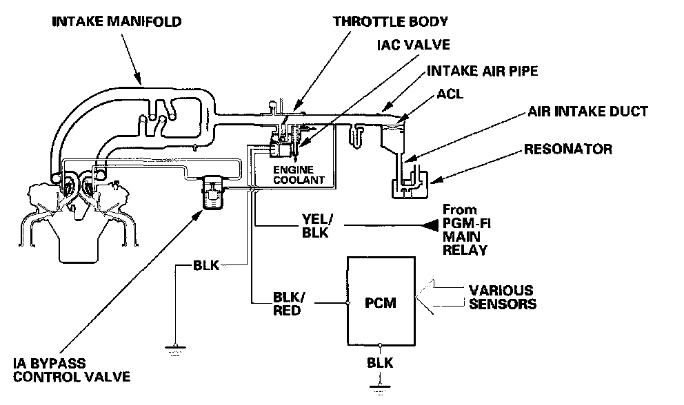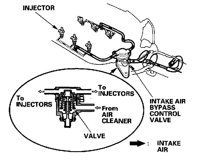 When the engine is running, the intake air bypass control valve sends air to the injectors.