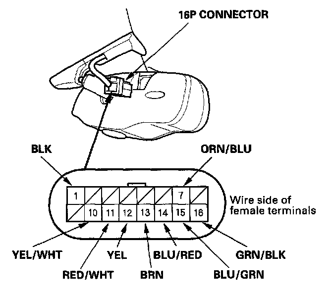 3. Check for voltage between the NO. 16 terminal and body ground with the ignition switch ON (II) and A/T gear position in [R].