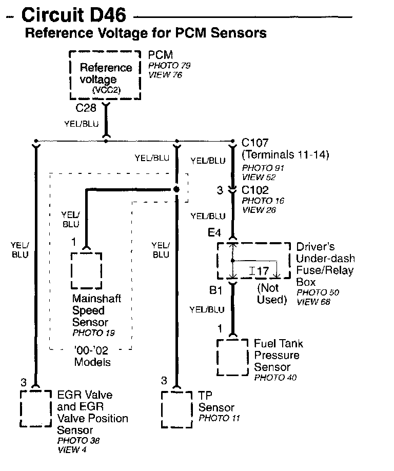 Circuit D46 Reference Voltage For PCM Sensor Image 15-9b: