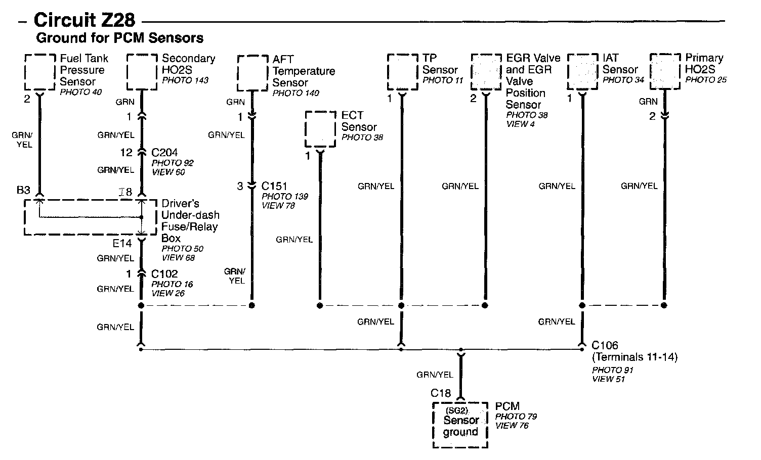 Circuit Z28 Ground For PCM Sensor Image 15-14: