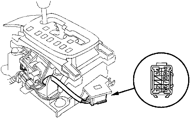 4. Shift the shift lever out of the [P] position, and check for continuity between the terminals in step 3. There should be no continuity.